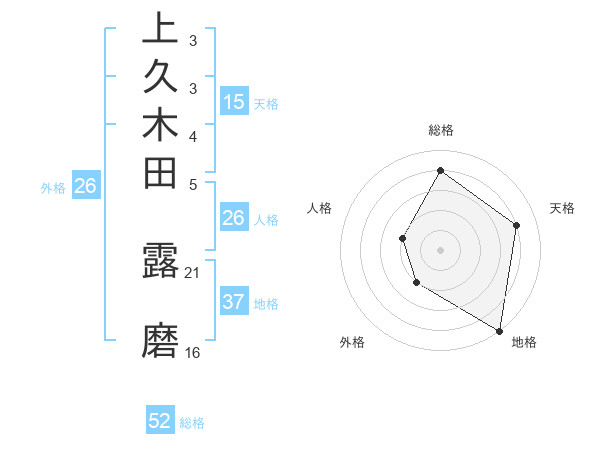 上久木田 露磨さんの総格は52画の4点!