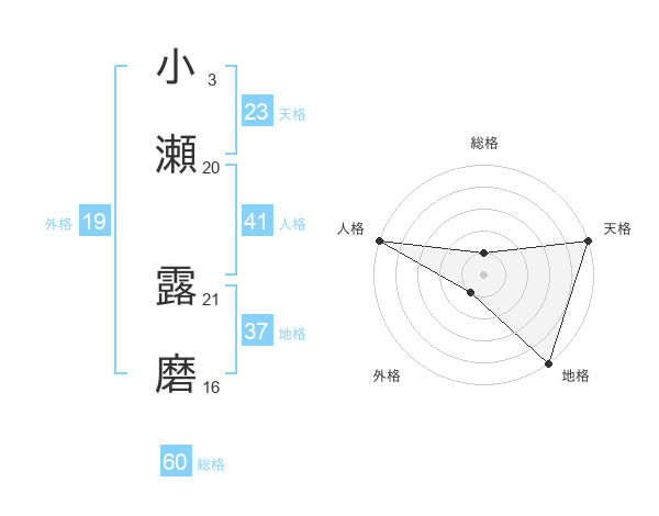 小瀬 露磨さんを姓名の画数から五運を鑑定