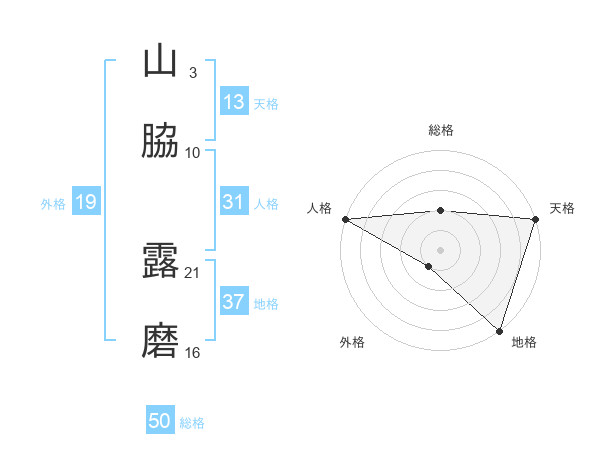 山脇 露磨さんを姓名の画数から五運を鑑定
