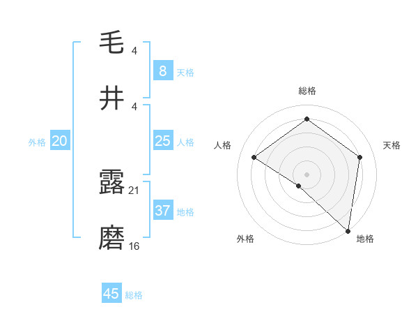 毛井 露磨さんを姓名の画数から五運を鑑定
