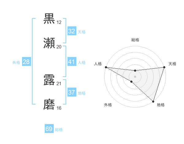 黒瀬 露磨さんを姓名の画数から五運を鑑定