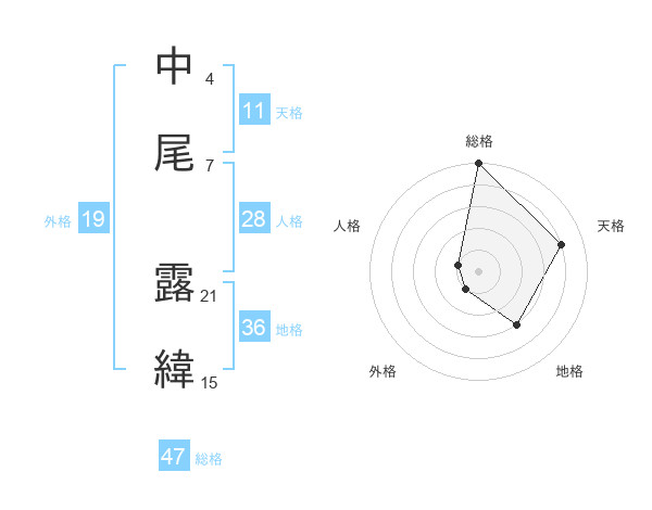 中尾 露緯さんの総格は47画の5点!