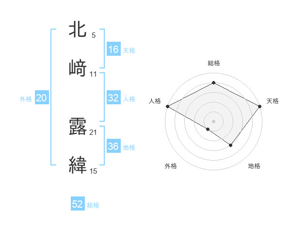 北﨑 露緯さんの総格は52画の4点!