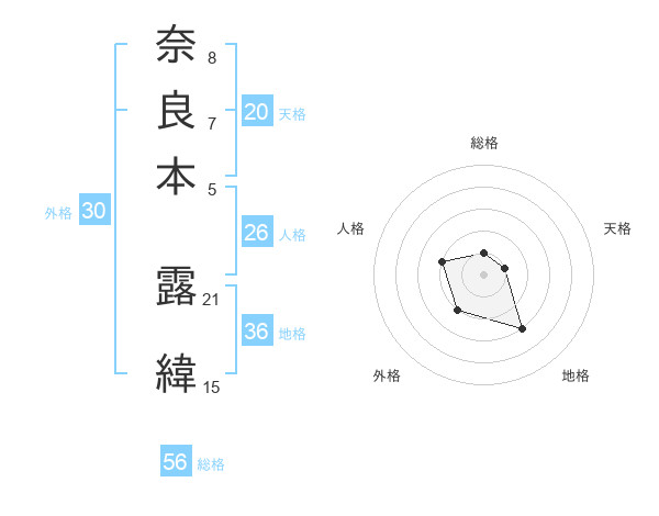 奈良本 露緯さんを姓名の画数から五運を鑑定