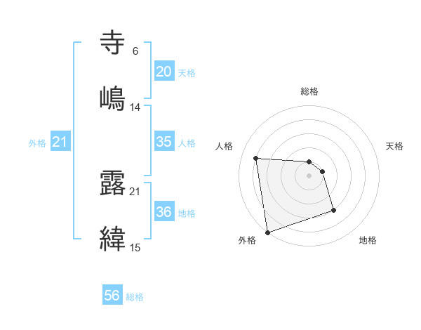 寺嶋 露緯さんの総格は56画の1点!