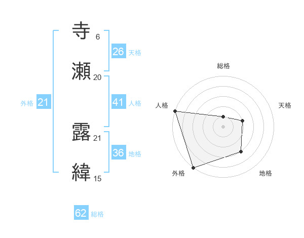 寺瀬 露緯さんを姓名の画数から五運を鑑定