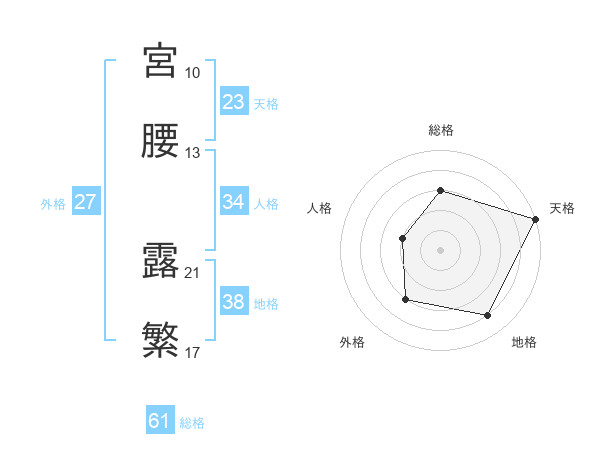 宮腰 露繁さんを姓名の画数から五運を鑑定