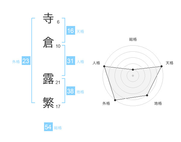 寺倉 露繁さんを姓名の画数から五運を鑑定