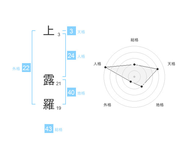 上 露羅さんの総格は43画の2点!