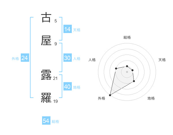 古屋 露羅さんの外格は24画の5点!