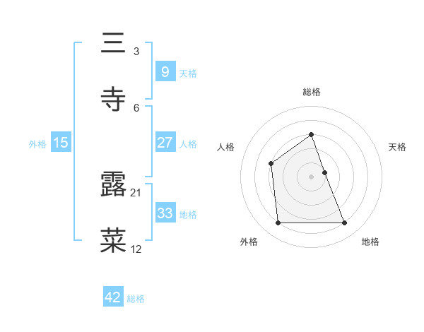 三寺 露菜さんの外格は15画の4点!