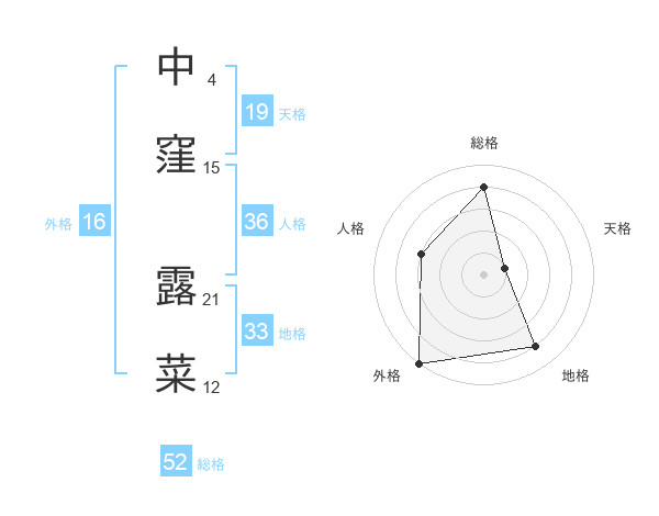 中窪 露菜さんの総格は52画の4点!