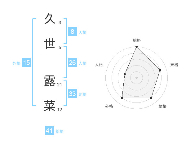 久世 露菜さんを姓名の画数から五運を鑑定