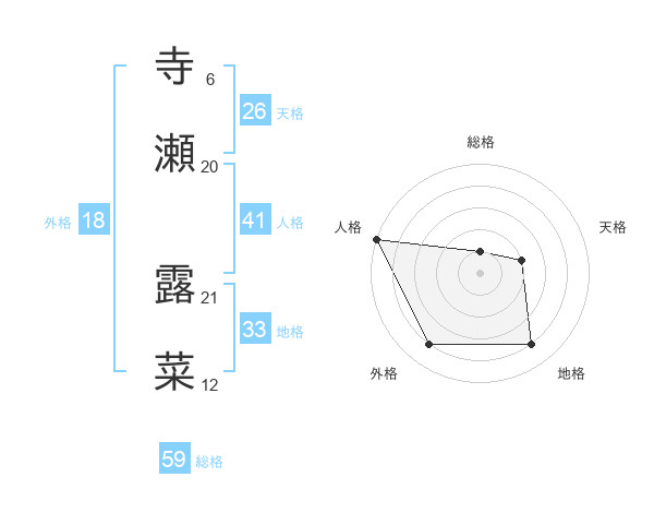 寺瀬 露菜さんの総格は59画の1点!