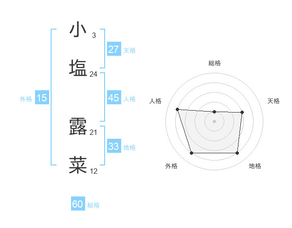 小塩 露菜さんの総格は60画の1点!
