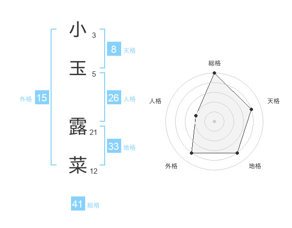 小玉 露菜さんの総格は41画の5点!