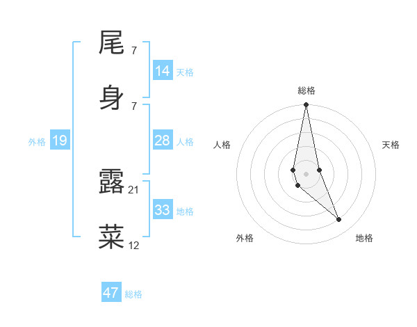 尾身 露菜さんの総格は47画の5点!