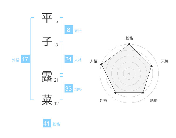 平子 露菜さんの総格は41画の5点!