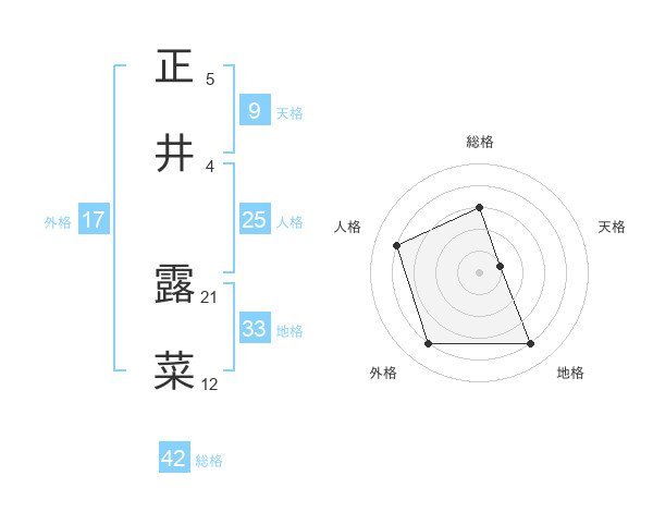 正井 露菜さんを姓名の画数から五運を鑑定