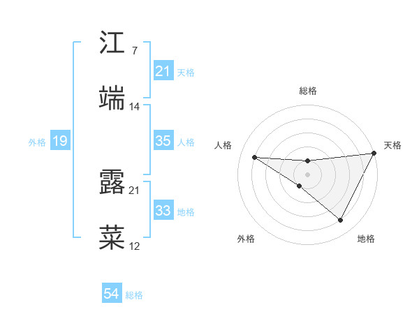 江端 露菜さんの総格は54画の1点!
