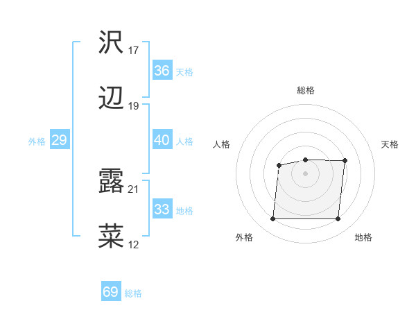沢辺 露菜さんを姓名の画数から五運を鑑定