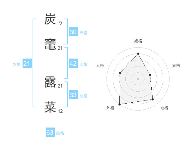 炭竈 露菜さんの総格は63画の4点!
