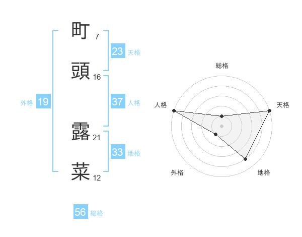 町頭 露菜さんを姓名の画数から五運を鑑定
