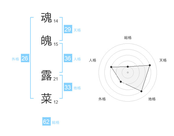 魂魄 露菜さんを姓名の画数から五運を鑑定