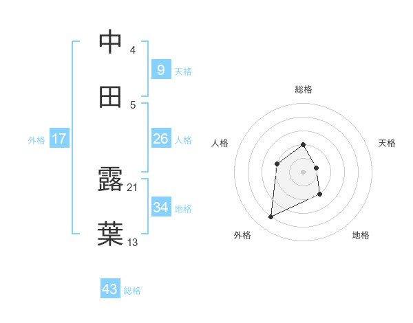 占い結果は姓名判断である以上、良い場合も悪い場合もありますが、決してお名前を誹謗中傷するものでなく、画数の自動計算によって得られたものです。また、本サイトの検索によって得られた鑑定結果で、第三者を誹謗中傷したり名誉を棄損するような行為を禁じます。