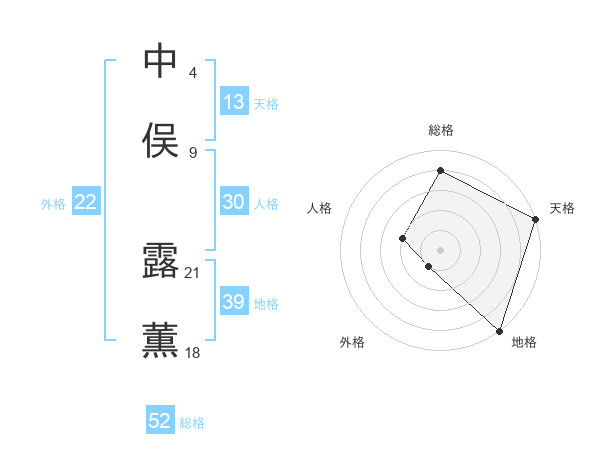 中俣 露薫さんの総格は52画の4点!