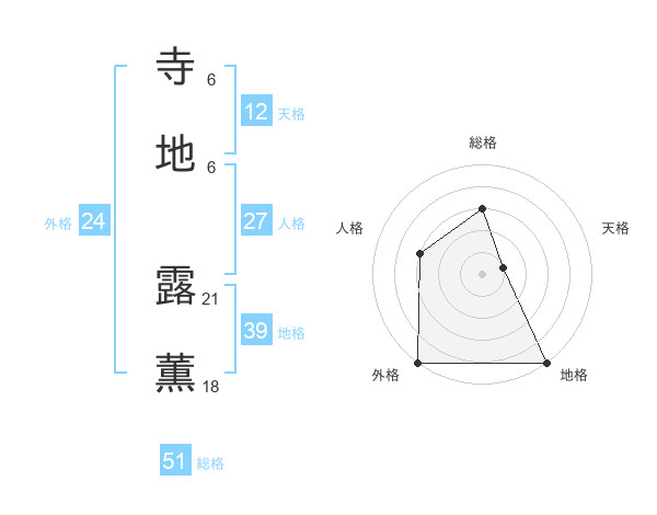 寺地 露薫さんの総格は51画の3点!