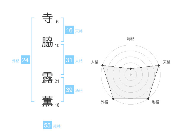 寺脇 露薫さんを姓名の画数から五運を鑑定