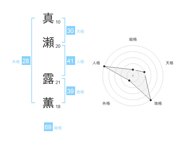 真瀬 露薫さんの総格は69画の1点!