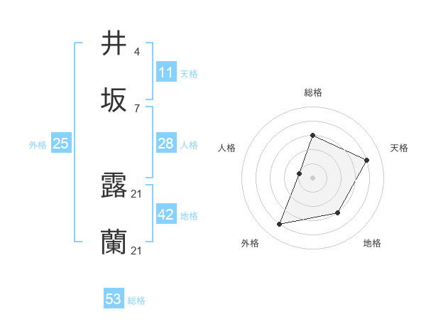 井坂 露蘭さんの総格は53画の3点!