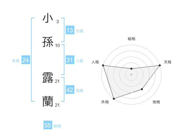 小孫 露蘭さんの総格は55画の1点!
