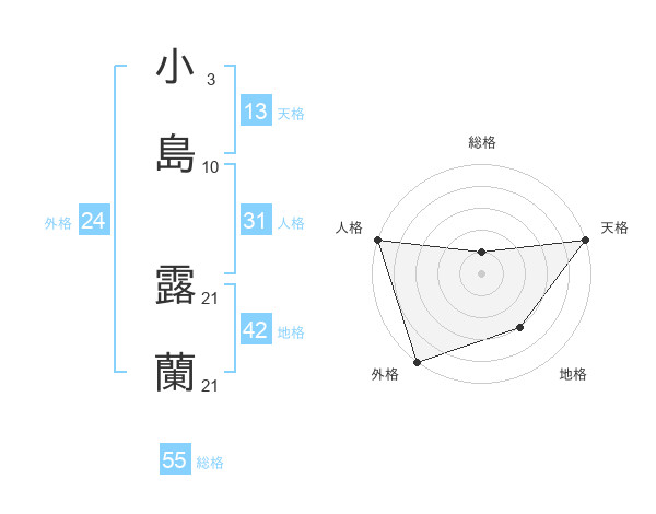 小島 露蘭さんを姓名の画数から五運を鑑定