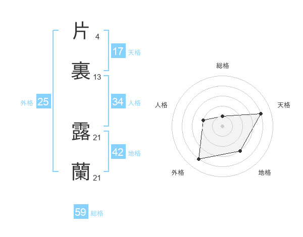 片裏 露蘭さんの総格は59画の1点!