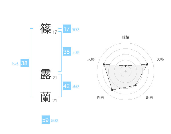 篠 露蘭さんを姓名の画数から五運を鑑定