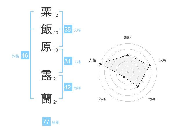 粟飯原 露蘭さんの総格は77画の3点!