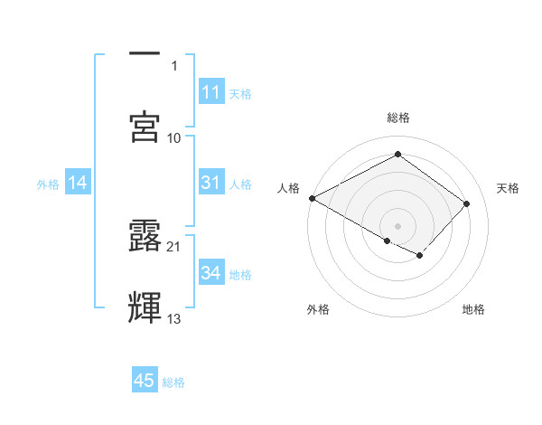 一宮 露輝さんの総格は45画の4点!