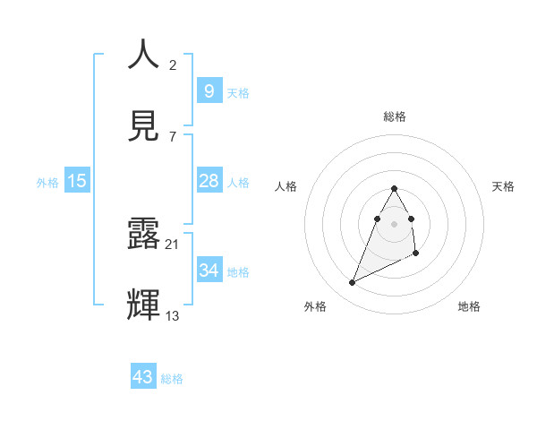 人見 露輝さんの総格は43画の2点!