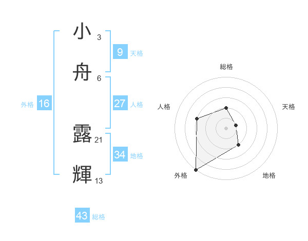小舟 露輝さんを姓名の画数から五運を鑑定