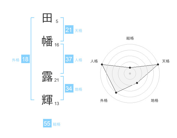 田幡 露輝さんの総格は55画の1点!