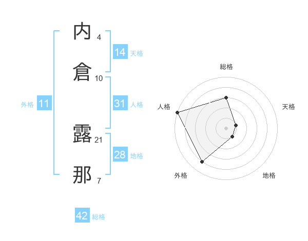 内倉 露那さんを姓名の画数から五運を鑑定