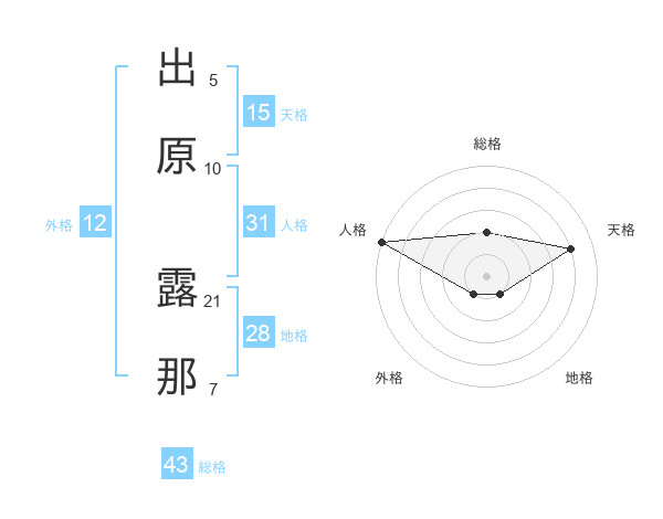 出原 露那さんの天格は15画の4点!