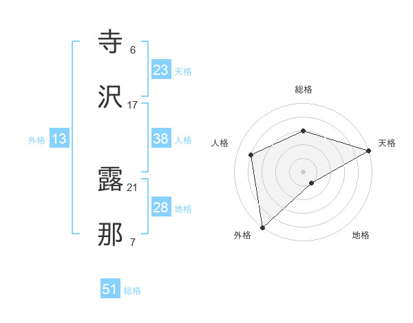 寺沢 露那さんを姓名の画数から五運を鑑定