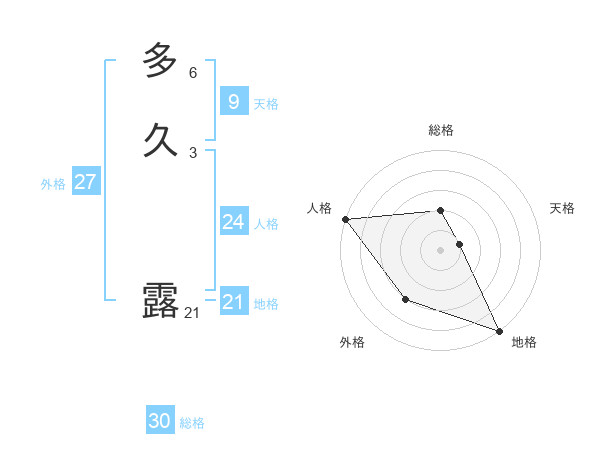 多久 露さんの総格は30画の2点!