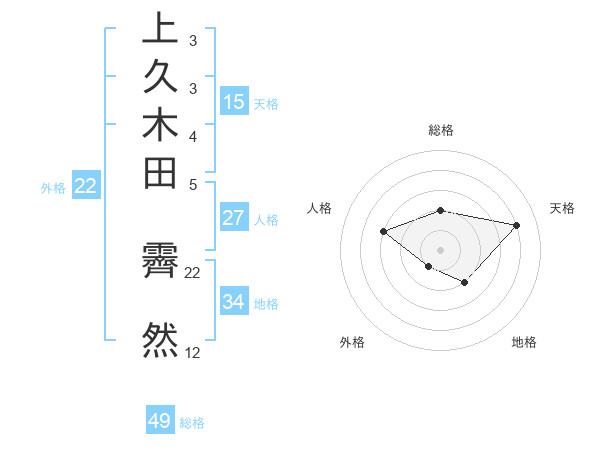 上久木田 霽然さんを姓名の画数から五運を鑑定