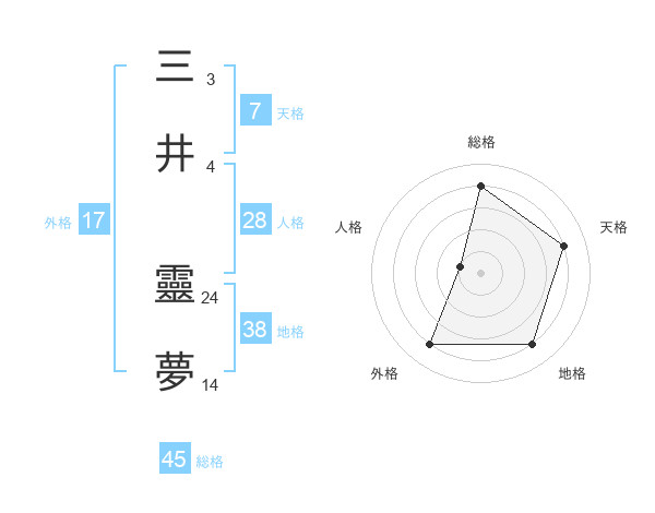 三井 靈夢さんの総格は45画の4点!