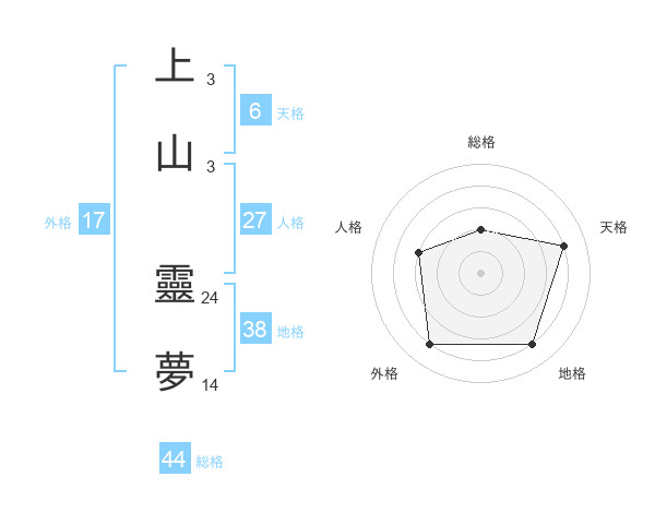 上山 靈夢さんの総格は44画の2点!